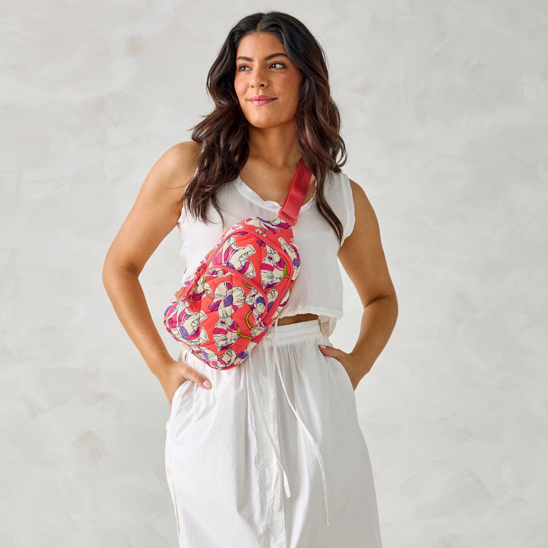 Lorman Sling Backpack-Swirling Poppies-Image 1-Vera Bradley